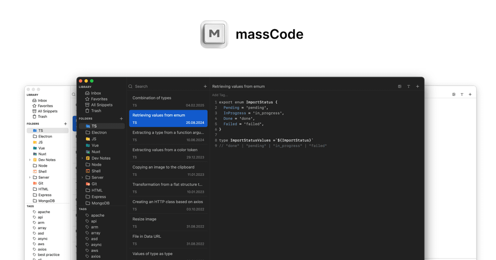 massCode is an essential tool for developers looking to efficiently manage, share, and utilize their code snippets and notes.