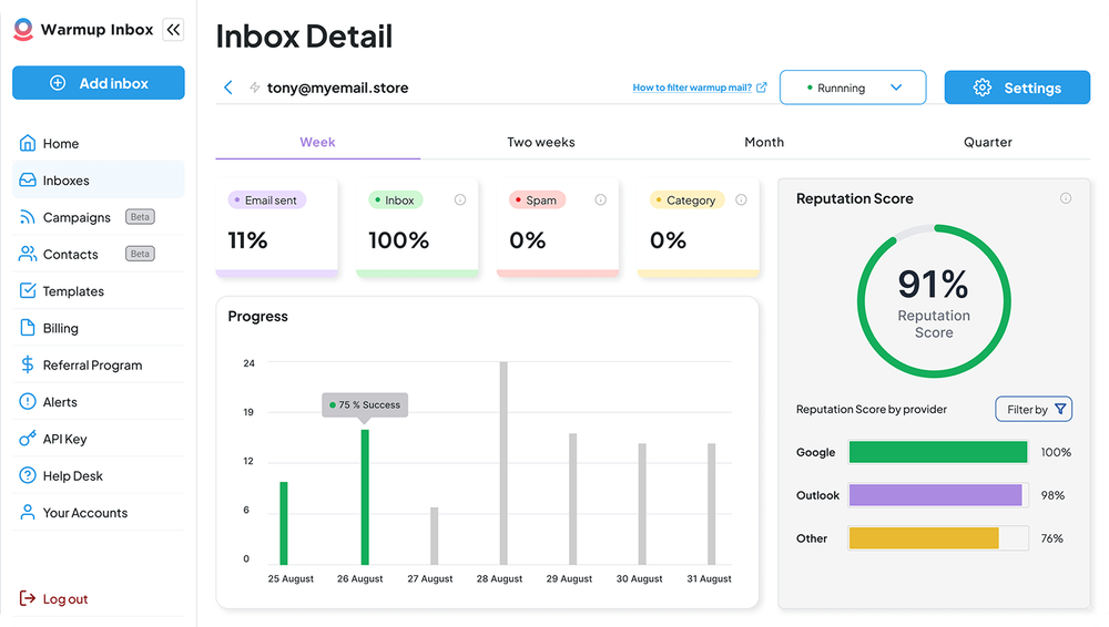 - Real-time Alerts: Notifies you via email if your Reputation Score drops, allowing you to pause campaigns and prevent further damage.